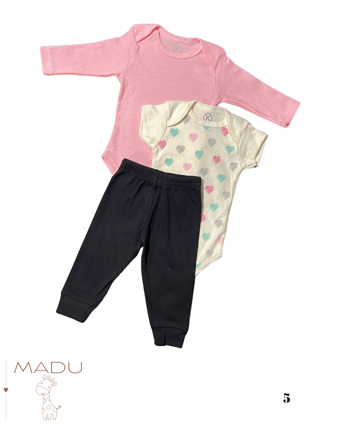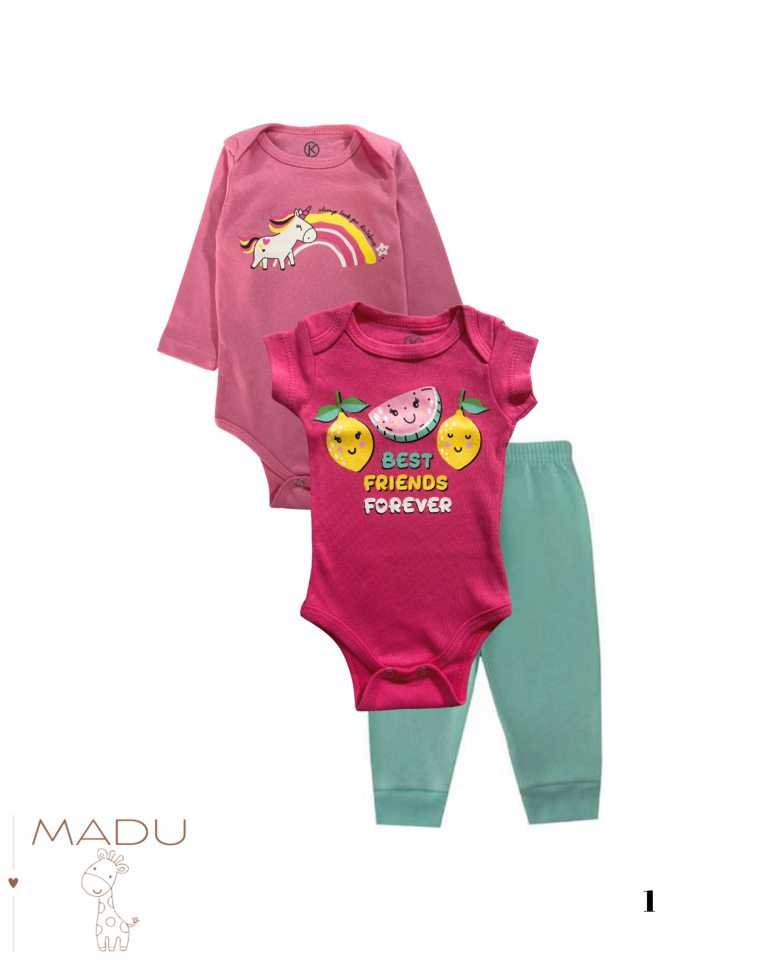 Kit Bebê com 2 Bodies e 1 Calça – Conforto e Estilo para seu bebe